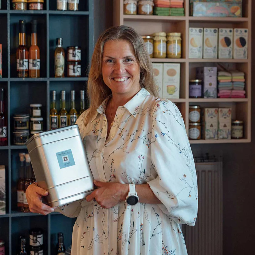 Helle ønskede at fortsætte Susannes smukke og tidløse udseende med logo og farve af brandet Square. Butikken har gennemgået en makeover i juli 2021 og fremstår i dag mere moderne, endnu smukkere og mere nutidig.